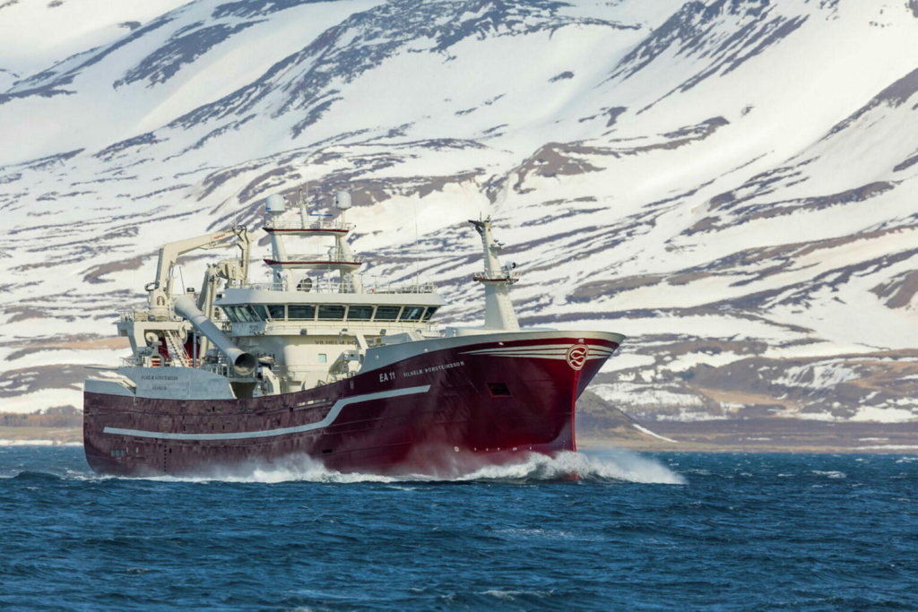 Samherji’s Vilhelm Þorsteinsson is one of the most advanced pelagic vessels in the Icelandic fleet, purpose built to deliver high efficiency, low emissions, and exceptional catch quality across both purse seining and pelagic trawling.