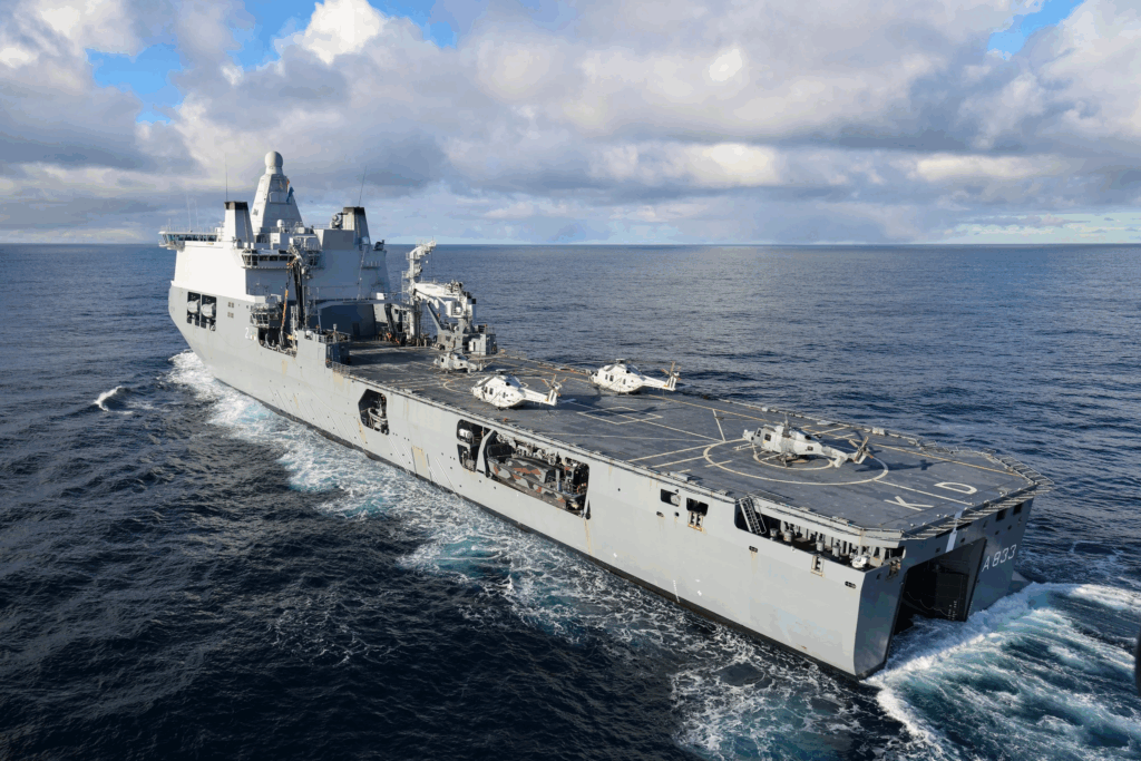 This stable electrical foundation supports flight operations, radar and communications, cargo handling and onboard support systems. Reliability and ease of maintenance are essential for a vessel that frequently acts as a logistical backbone for multinational missions.