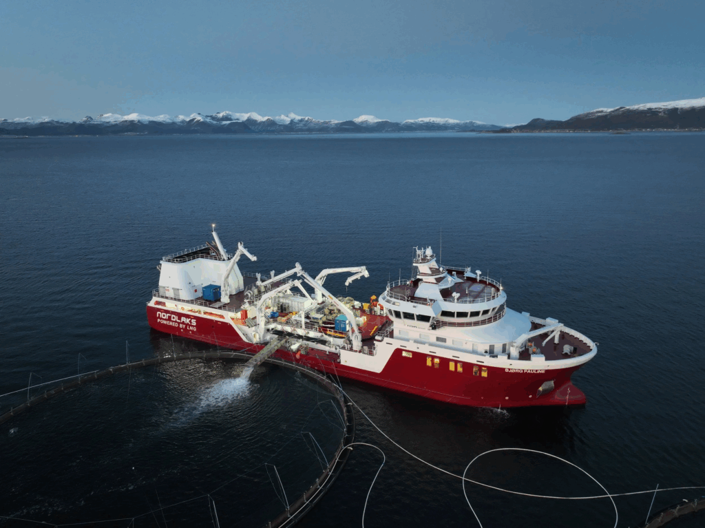 Bjørg Pauline marked an important milestone in the development of sustainable aquaculture when it entered service as the world’s first wellboat operating on pure LNG propulsion, supported by a substantial battery package and high-capacity shore-power capability.